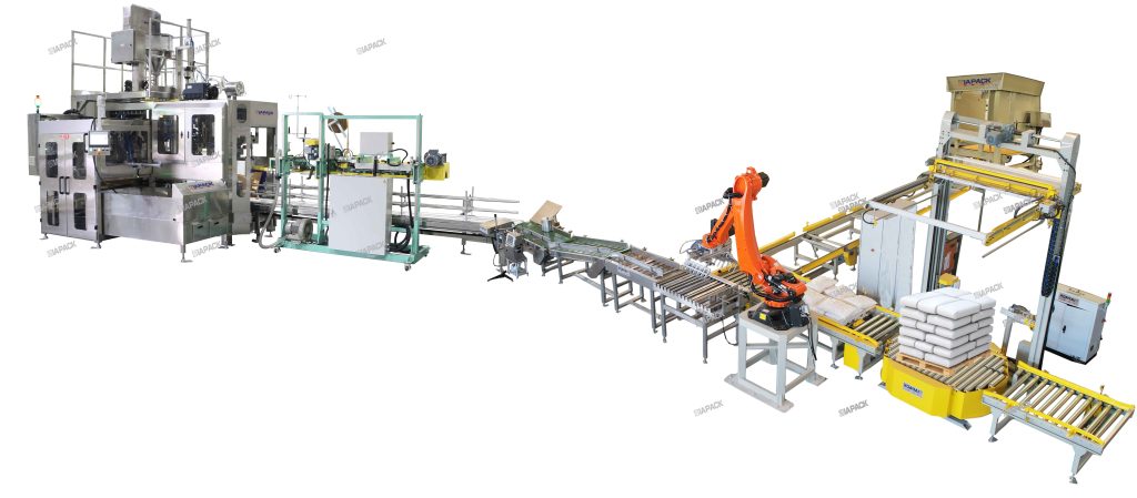 Kini nga linya espesyal nga disenyo alang sa awtomatik nga pagtimbang sa bulk powder nga pagpuno sa bagging ngadto sa 15-25kg karft paper bag unya pag-seal sa bag .Sumala sa kinahanglanon sa kliyente kinahanglan usab namo nga itanyag ang automatic weight check , metal detector ug palletizing .Gikompleto sa magbabaligya ang disenyo, paghimo ug suplay sa linya sa produksiyon sa higpit nga pagsunod sa teknikal nga mga kinahanglanon ug gihiusa sa kaugalingon nga linya sa industriya sa pagputos.