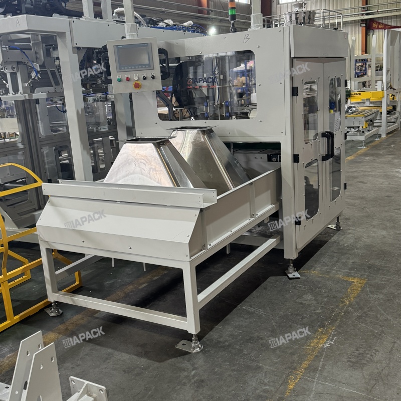Kini nga yunit naglangkob sa usa ka bag storage bin, bag pagkuha ug sorting device, bag loading robot, bag clamping ug unloading device, bag pushing device, bag mouth guide device, vacuum system ug control system.