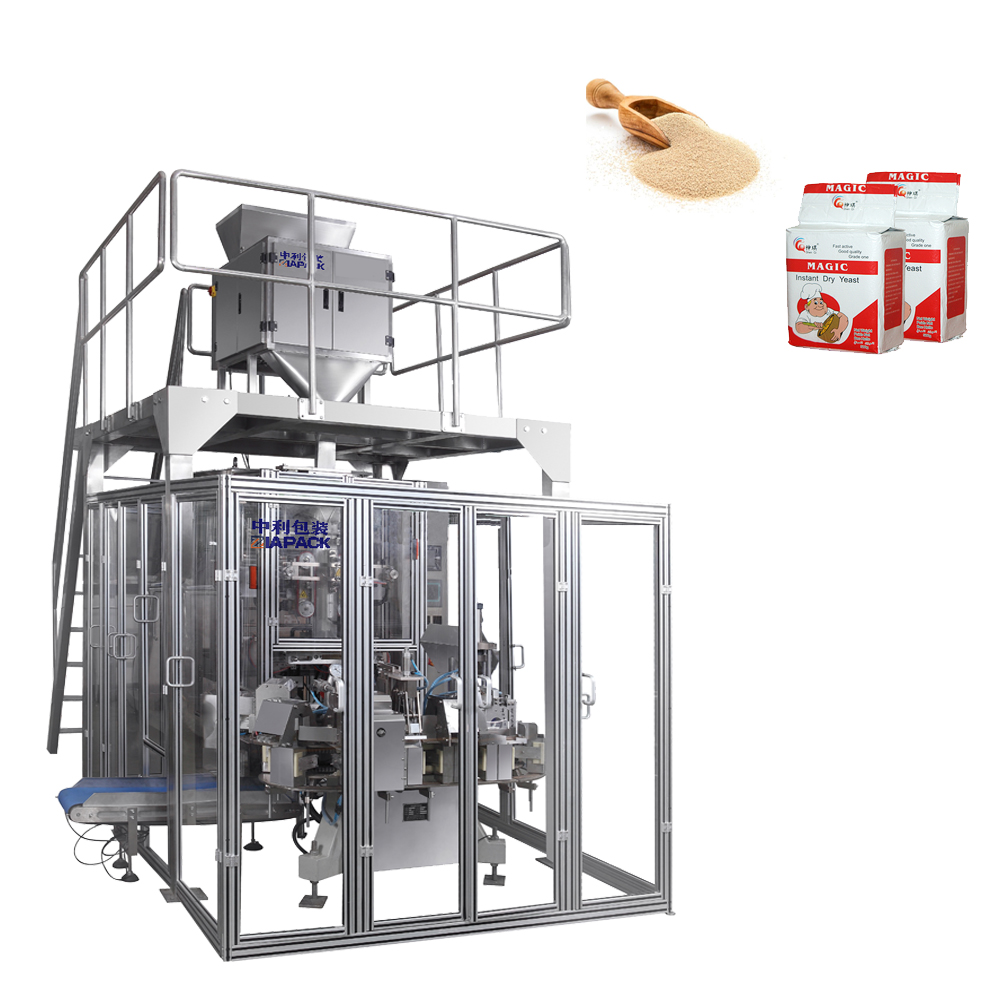 Ang packaging machine mahimong mabakunahan uban ang nagkalainlain nga gibug-aton ug pagpuno nga sistema alang sa nagkalain-laing granule ug pulbos sama sa humay, beans, pagkaon sa binuhi, kape sa yuta, gatas nga powder ug aditif sa pagkaon.