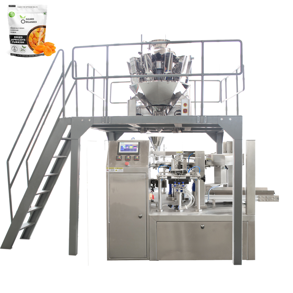 Ang rotary bag-given packing machine nga adunay lainlaing dosing (sama sa multihead weigher, filler filler, liquid filler etc.) mahimong haum alang sa automatic packing alang sa granular, powder, liquid, paste ug uban pa. Nagkalainlain nga matang sa produkto nga adunay premade stand-up zipper pouch ug uban pa.