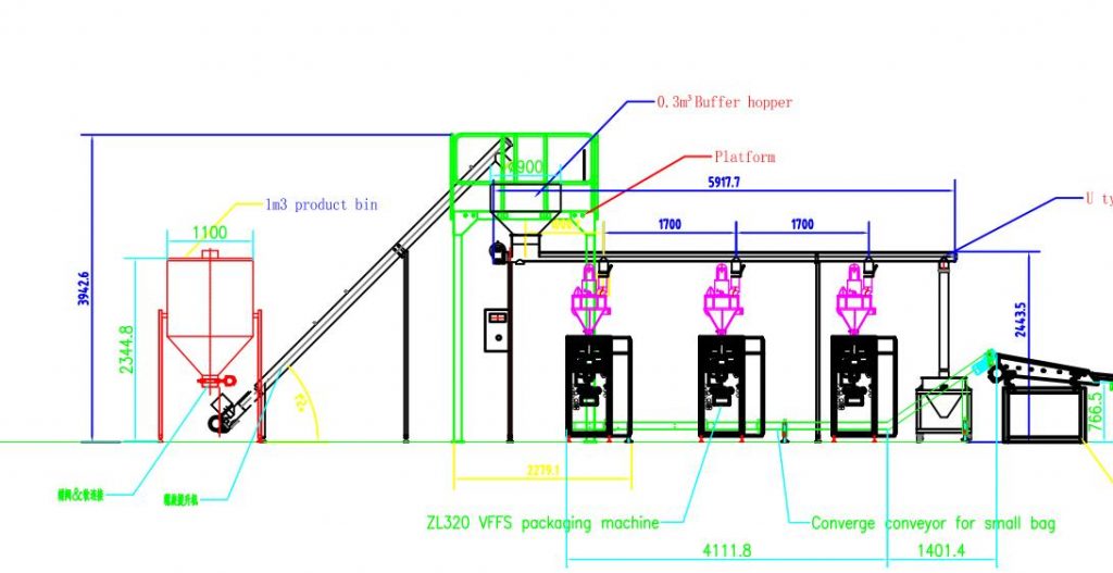 Kami adunay usa pa nga linya sa pagputos nga nahuman nga pag-install sa among pabrika sa kliyente. Ang tibuuk nga linya naglakip sa 6 ka set nga gagmay nga vffs nga bag nga nagporma pagpuno sa sealing packaging machine alang sa 50gram nga Buckwheat Flour dayon giputos sa usa ka dako nga pre-made nga zipper bag .Ang matag 16 pcs 50gram nga bag packing sa usa ka dako zipper bag .Ang tibuok nga linya bug-os nga awtomatiko gikan sa gamay nga bag nga nagporma, powder filling, bag sealing, bag conveying, Bag feeding ngadto sa dako nga weighing machine ug dayon ang matag 16 ka gagmay nga bag nga giputos sa usa ka dako nga zipper bag.