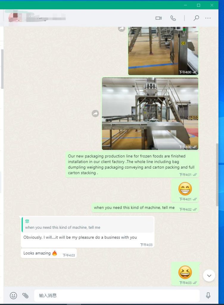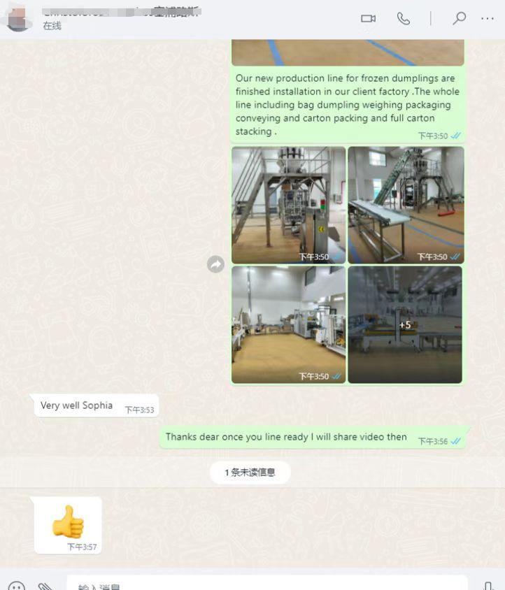 Ang laing awtomatik nga frozen food bag packing ug carton filling line malampusong na-install sa pabrika sa customer!