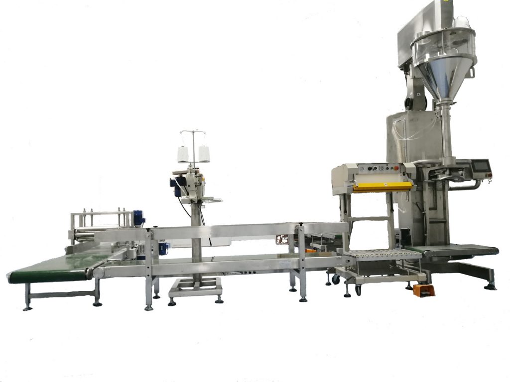 1, Pneumatic bag clamper ug plataporma nagsangkap sa load cell aron pagdumala sa duha ka tulin nga pagpuno sama sa matag preset nga gibug-aton. Gipakita nga adunay taas nga tulin ug tukma nga sistema sa pagtimbang aron magarantiya ang taas nga katukma sa pagputos.